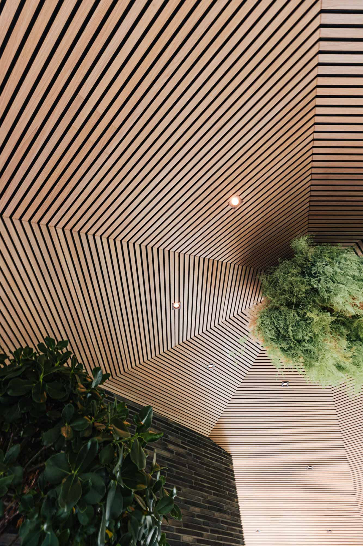 UniPanel® – a flat and unique wooden panel with tongue and groove joints – and DivideWall, a slatted wall that both defines spaces and adds elegance.