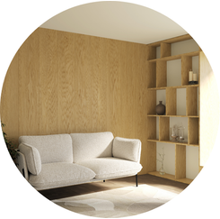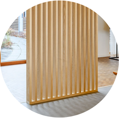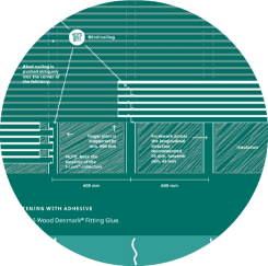 I-Wood Denmark® woodpanels can be adapted using a jig saw or a cross-cut saw. It is possible to adapt the products both in length and width. The felt is fixed in place in the spaces between the strips and on the “plate” behind you can drill a hole for spotlights, ceiling mounts and similar items without extra work. This can be done both before and after the panels are installed.