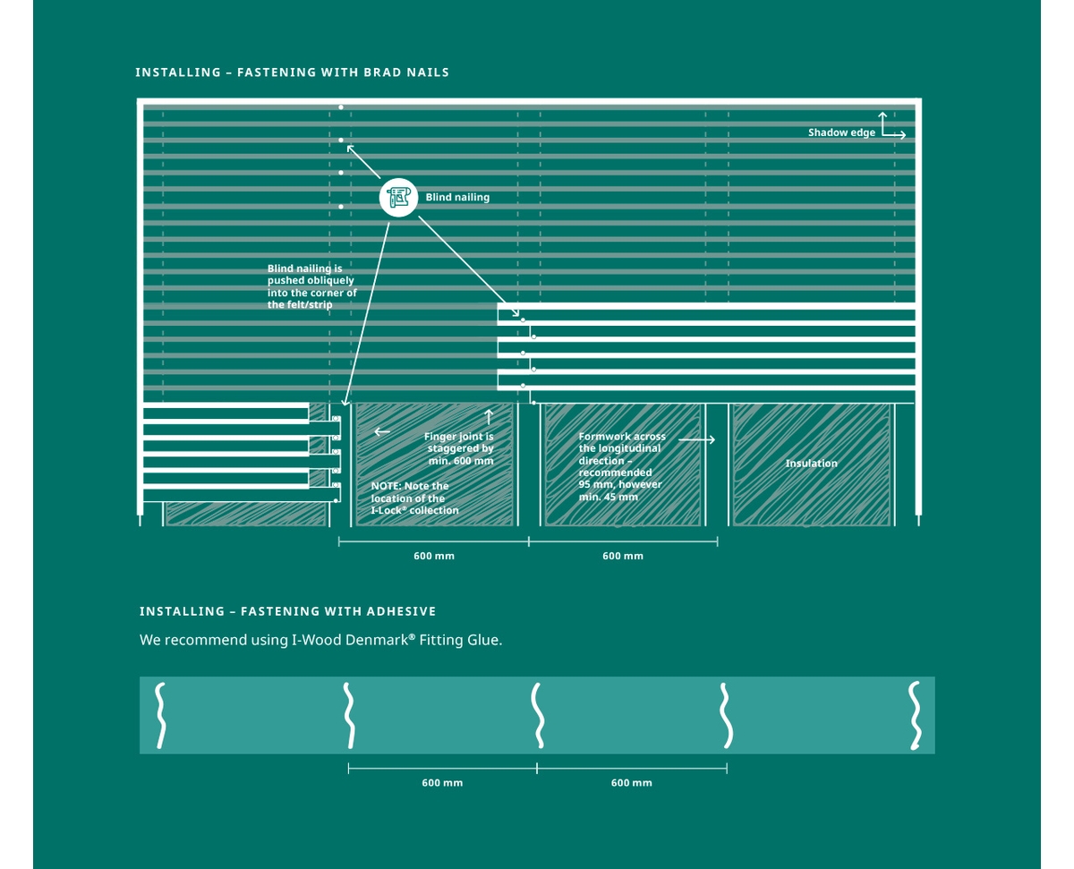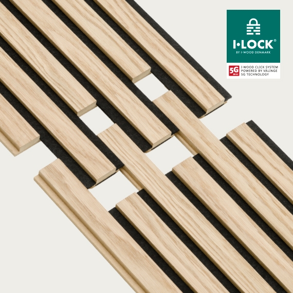 I-Wood Denmark® is the only company in the world to offer the I-Lock® Click System in our Pro+ ceiling panels. The solution is based on the globally recognised Välinge Innovation 5G locking technology, with which many of us are already familiar from numerous manufacturers of click flooring and furniture.