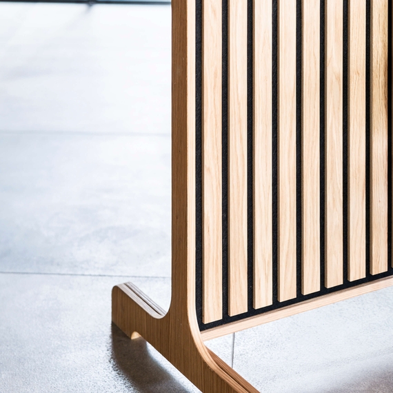 FLEXI WALL FROM I⋅WOOD has wooden legs as an integral part of the partition, so you don't have to compromise on style and attention to detail.