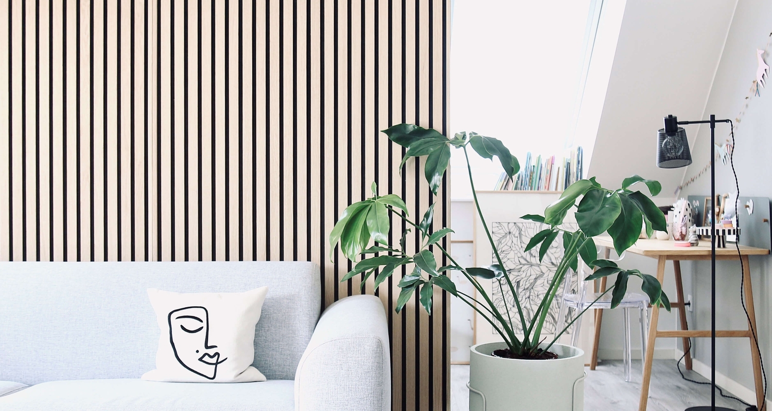 Create more space in your room with smart partitions from I⋅Wood. For example, create a screened-off office space behind the sofa or perhaps a small creative space for the home's artists. The partition can be moved and thus constantly used to create new settings in the home, depending on what you need. A simple partition like Flexi Wall allows the family to find a balance between quiet and togetherness.