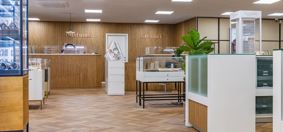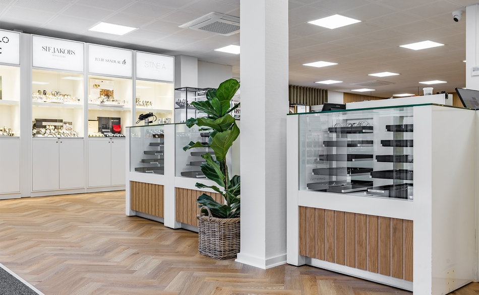 "The craftsmanship and details from I-Wood Denmark® fit perfectly with us. As goldsmiths and watchmakers, we know that it's the small details that make a big difference, and we're pleased that we have been able to integrate it so seamlessly into our decor."