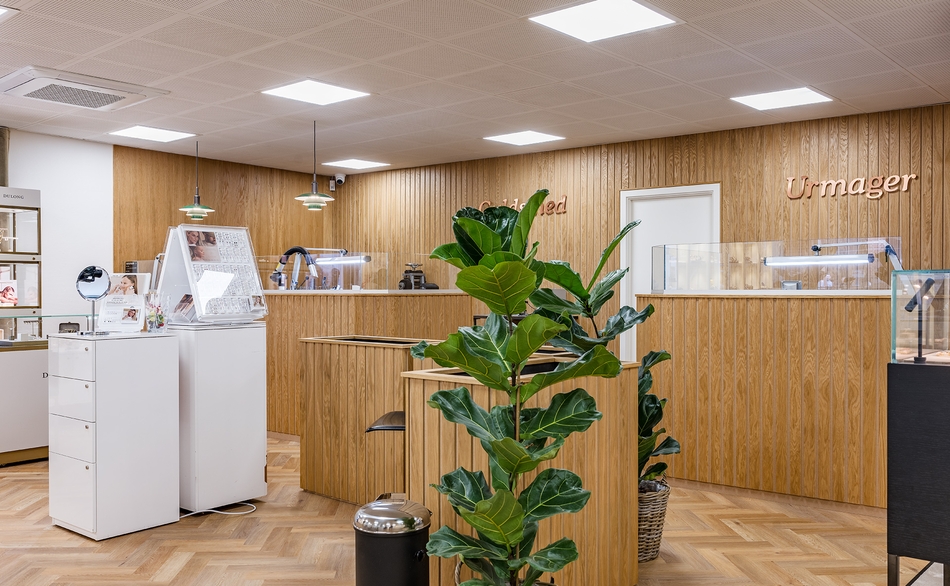 Goldsmith and watchmaker Ulsted & Nicolaisen have achieved a cohesive and stylish interior in their new shared shop with the latest UniPanels and 4-lamella from I-Wood Denmark®. Here, both functionality and aesthetics come together beautifully.