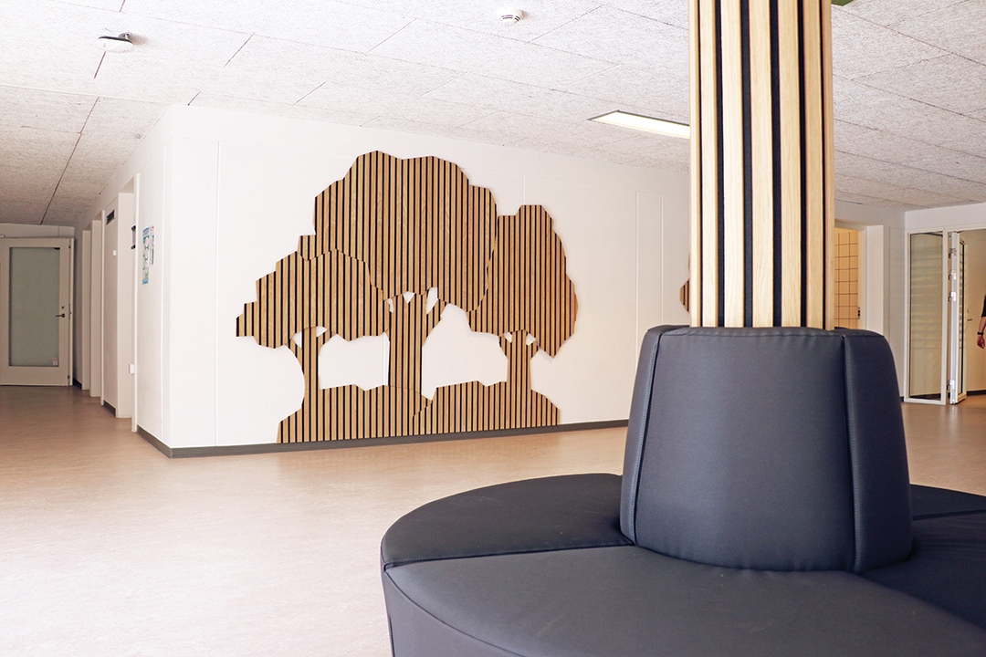 In collaboration with Ultima K and architect Tine Nørgaard, we have transformed Kasperskolen in Skovlunde to a more pleasant place for teachers and students. The aesthetic impression in the large rooms has been given a massive boost and the acoustics have also been taken to a good level thanks to the wall panels from I-Wood Denmark®.