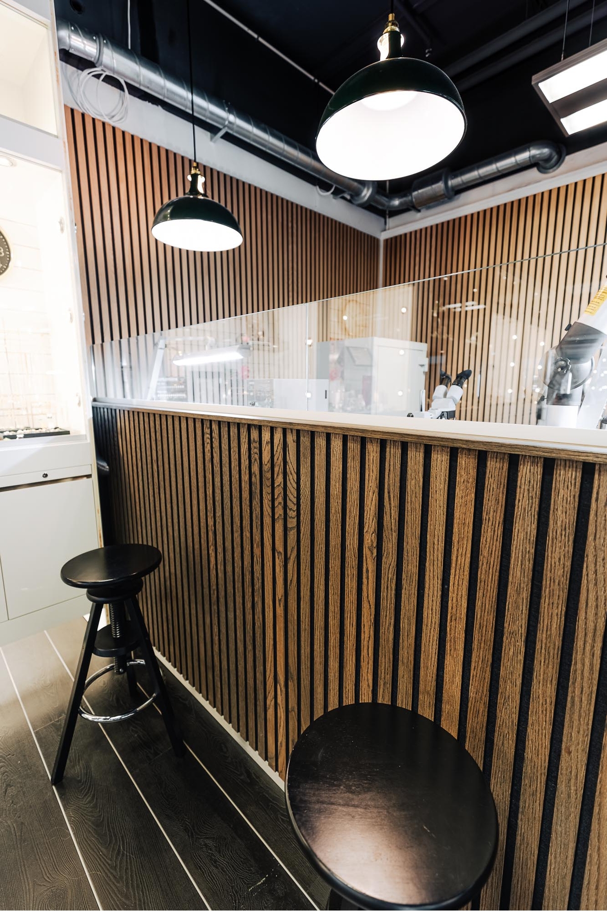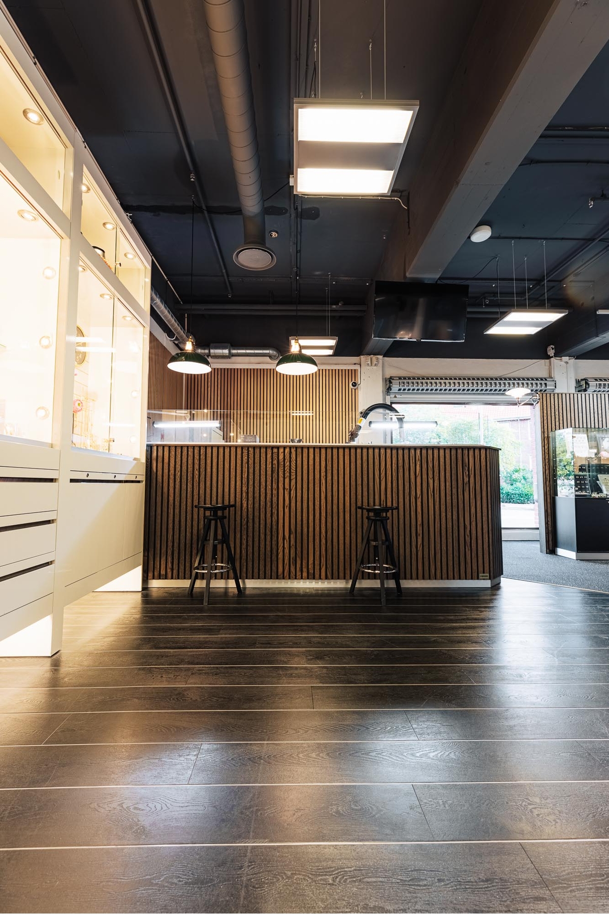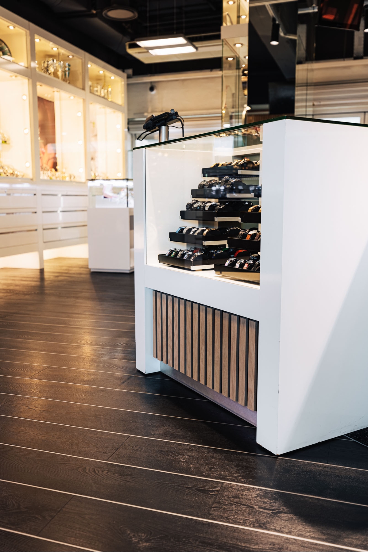 The shop needed a bit of an update and panels from I-Wood were chosen for the task. Watches and jewellery were to be presented in warmer and more pleasant surroundings. Not only in glass and large displays, but multiple small playful environments.