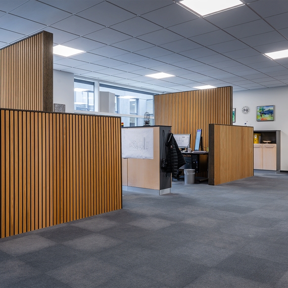 Flexi Wall from I-Wood Denmark has revitalized Østermark's open office landscape by improving acoustics. The solution was new partition walls that absorb sound and reduce background noise. With its mobile design, Flexi Wall easily adapts to changing needs, making it an ideal, long-term solution for modern workplaces.