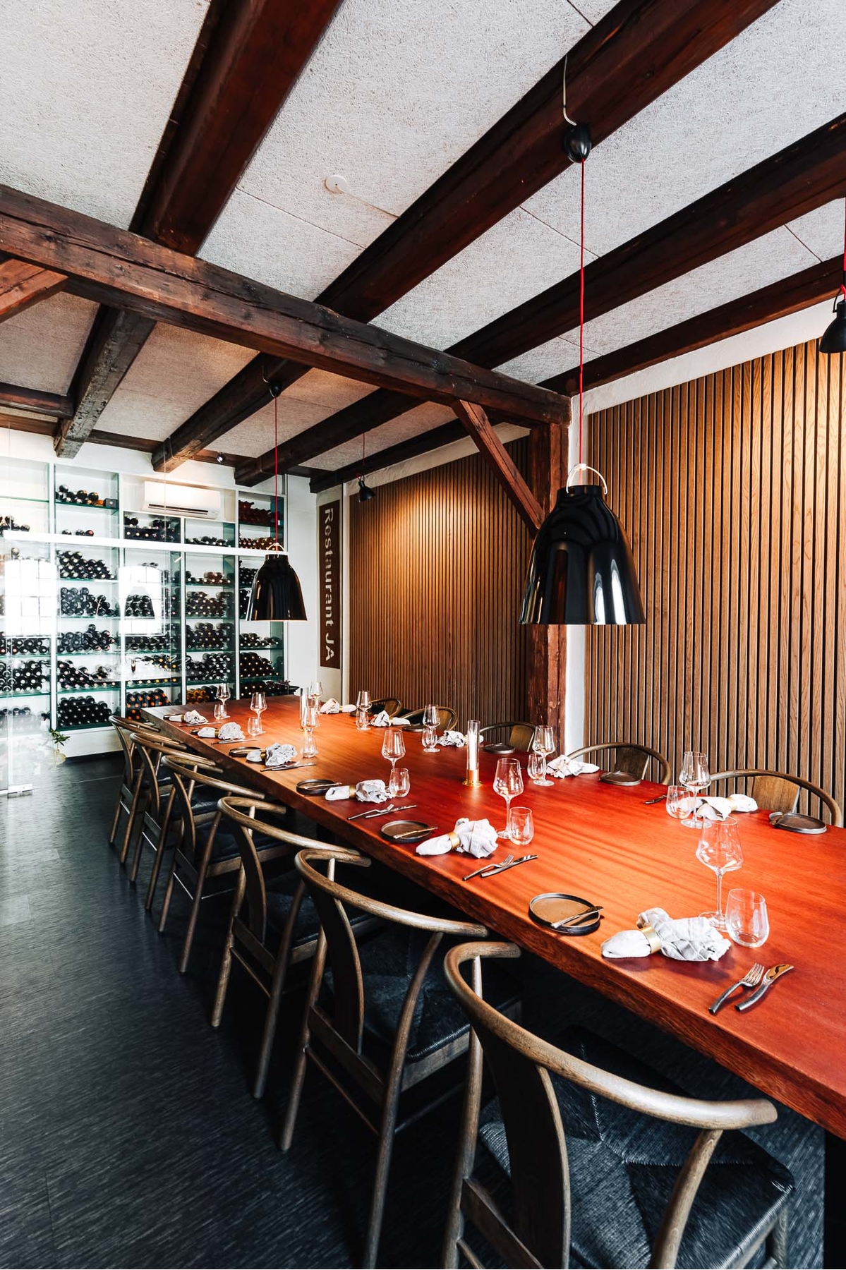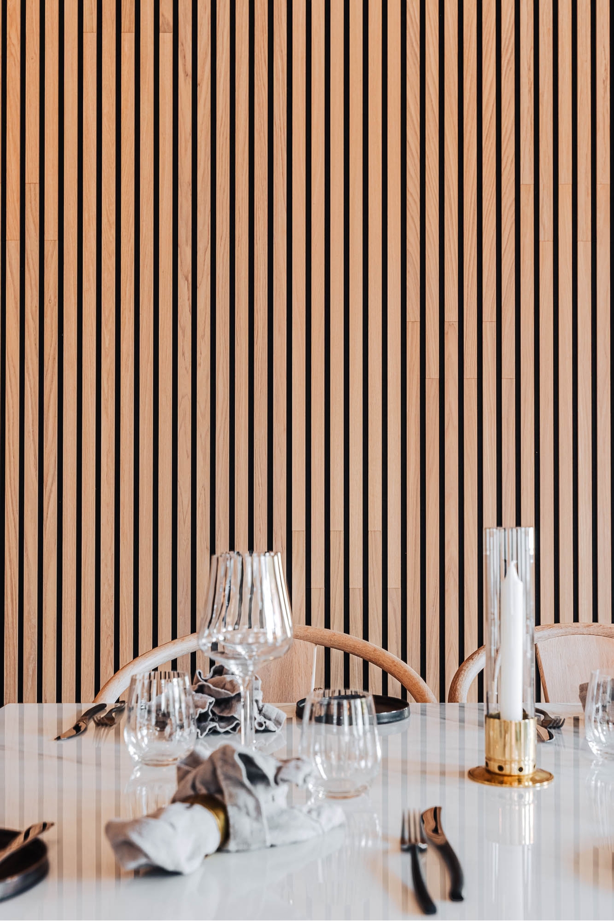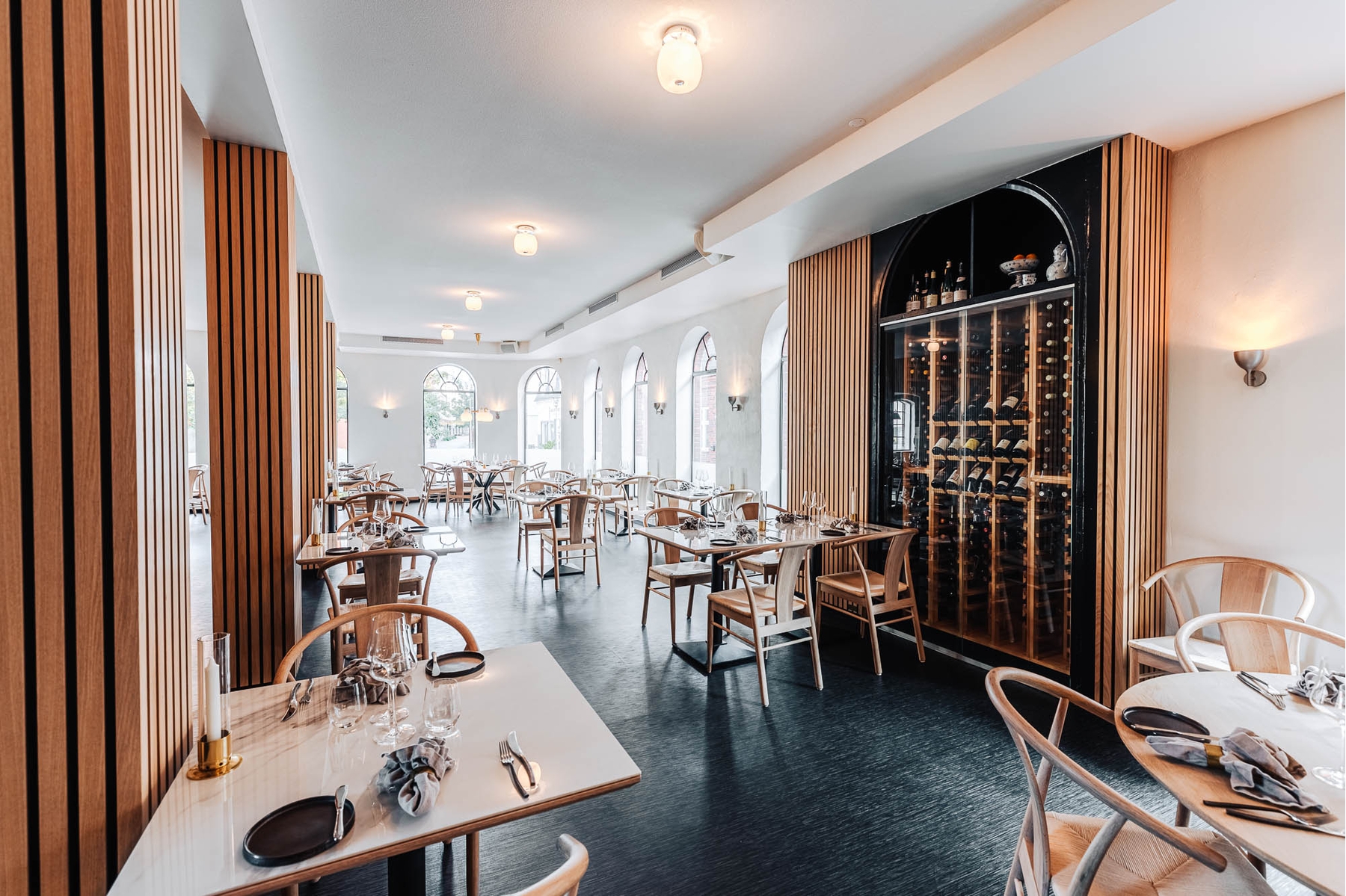 A brand-new gourmet restaurant in Holstebro. The job involved creating and implementing a certain style. They wanted to use wood and a Nordic style in the old buildings, so that it suited the style in their kitchen. They worked with the different colours from I-Wood to match with the different moods and with the furniture they had chosen.