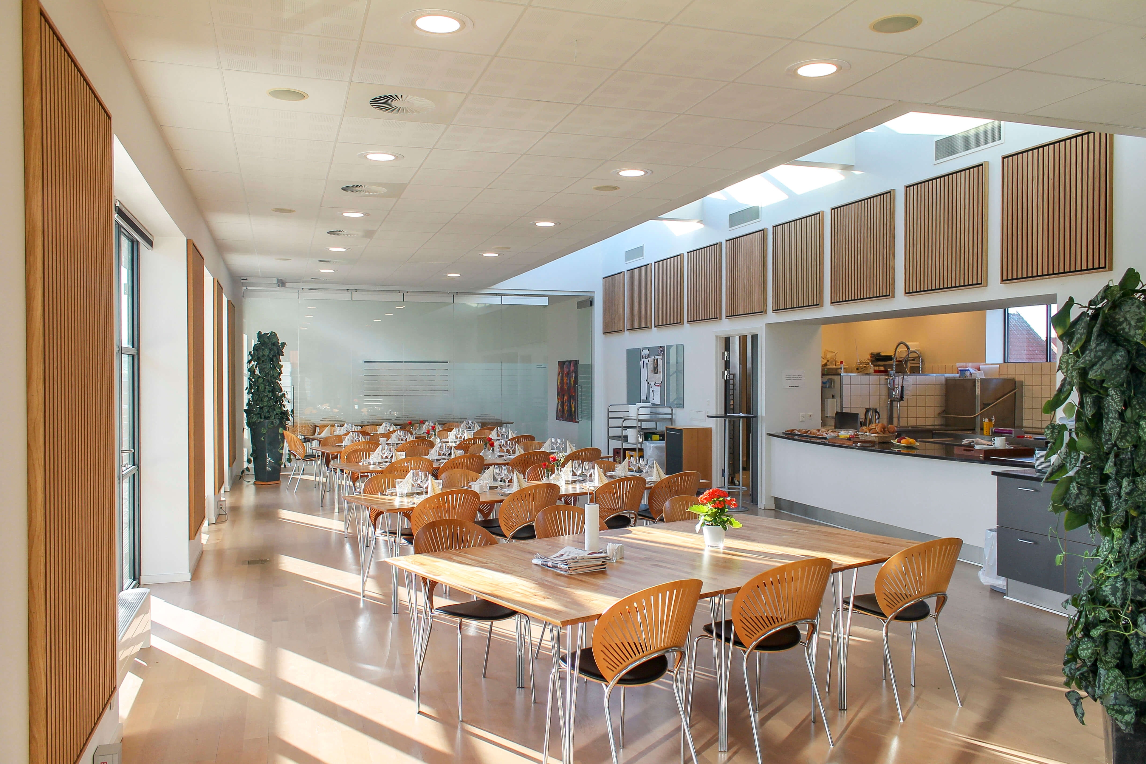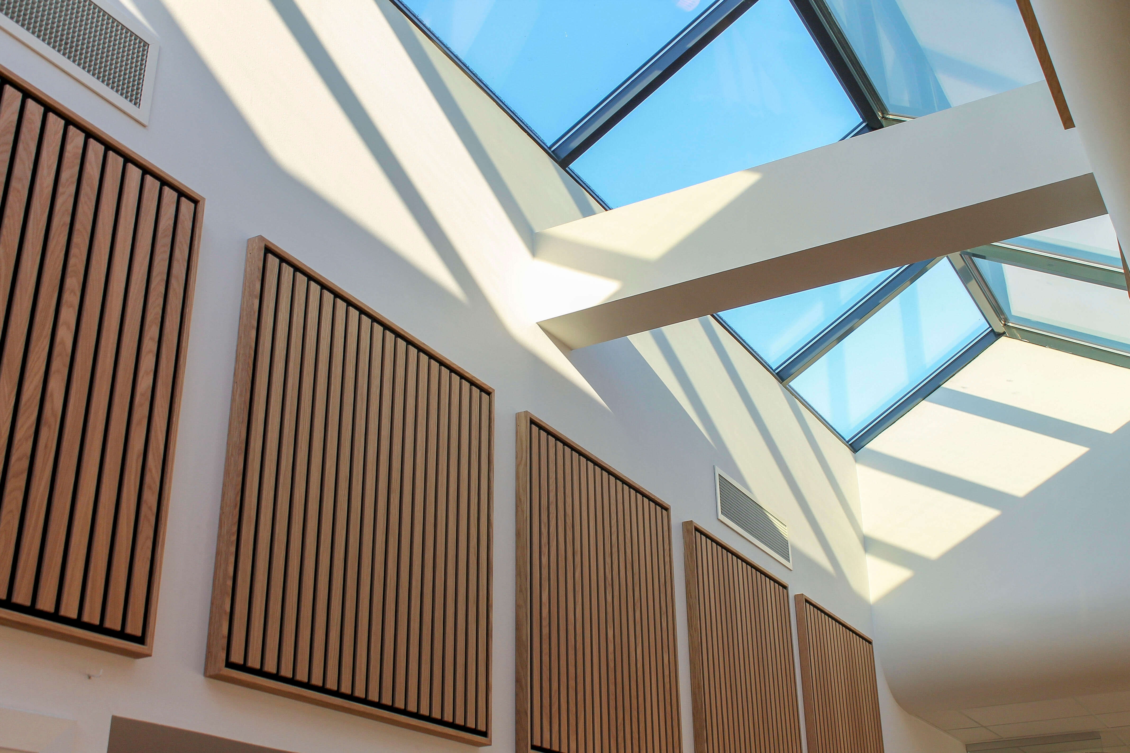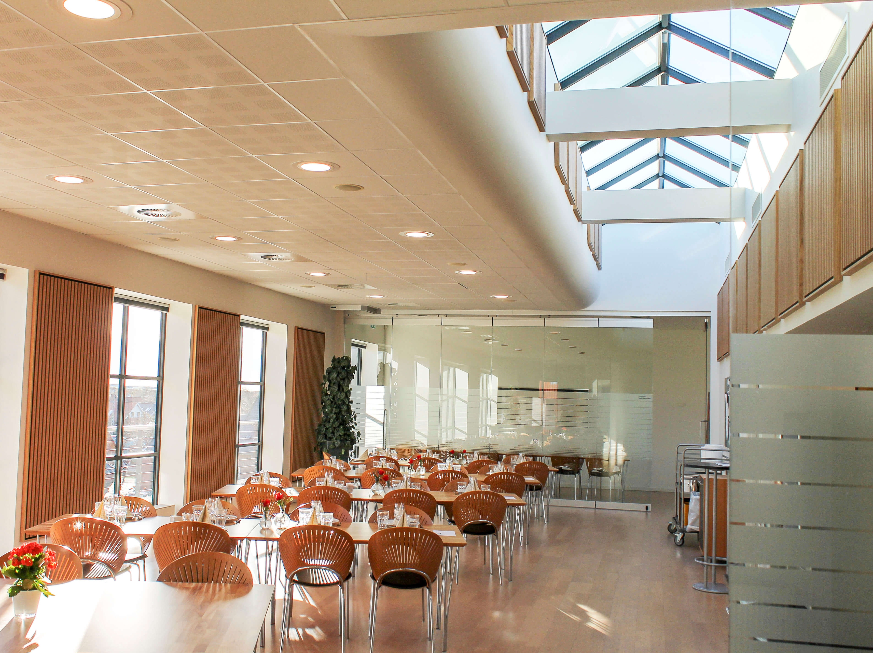 Skjern Bank faced major acoustic challenges. Employees were suffering from headaches when they used the canteen together. I-Wood Flexi Frame improved the acoustics while also serving as a decoration in the room. As Flexi Frames are assembled upon delivery the installation process was quick and easy. The frames were installed between two breaks and without disturbing the employees.