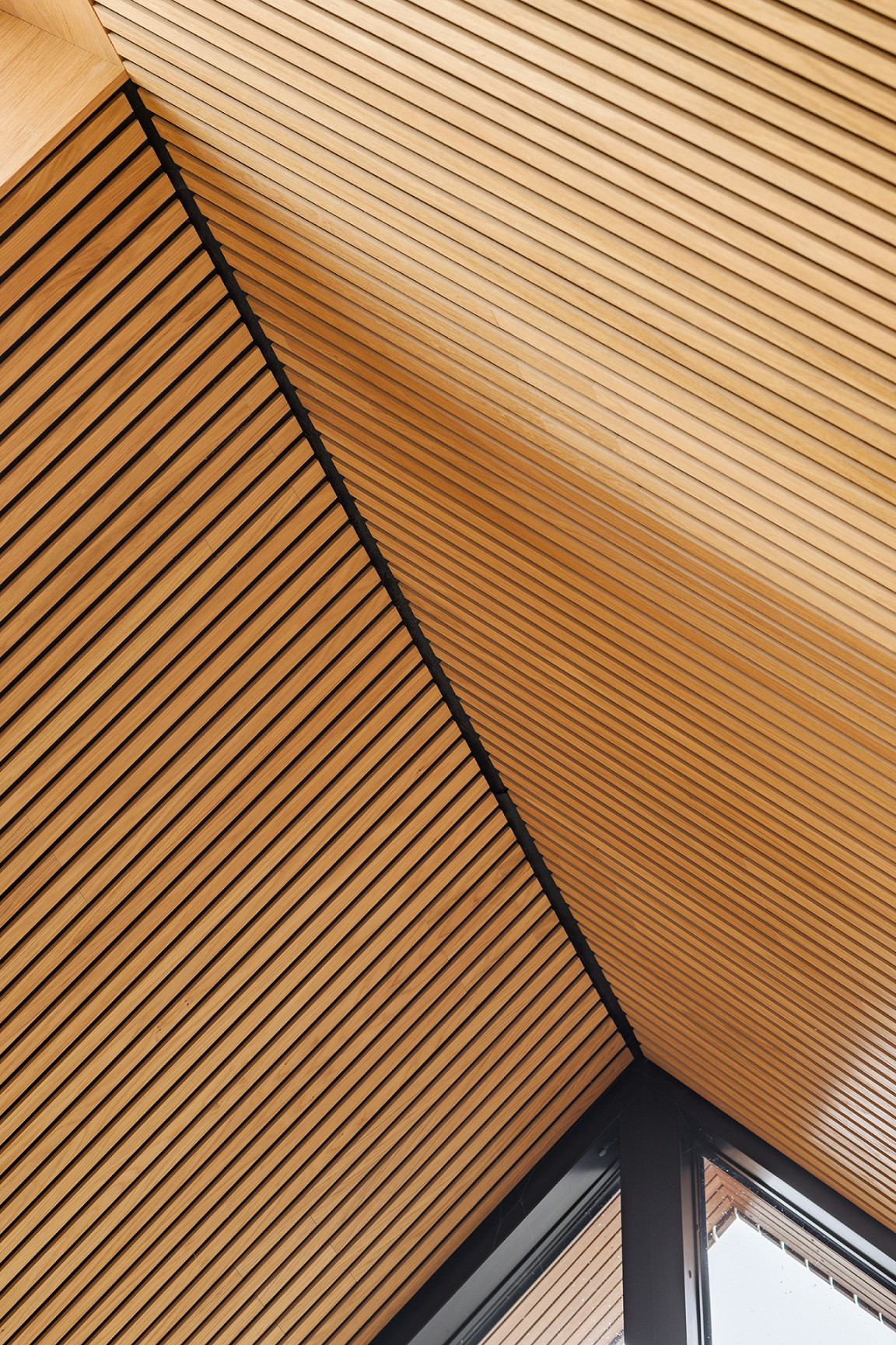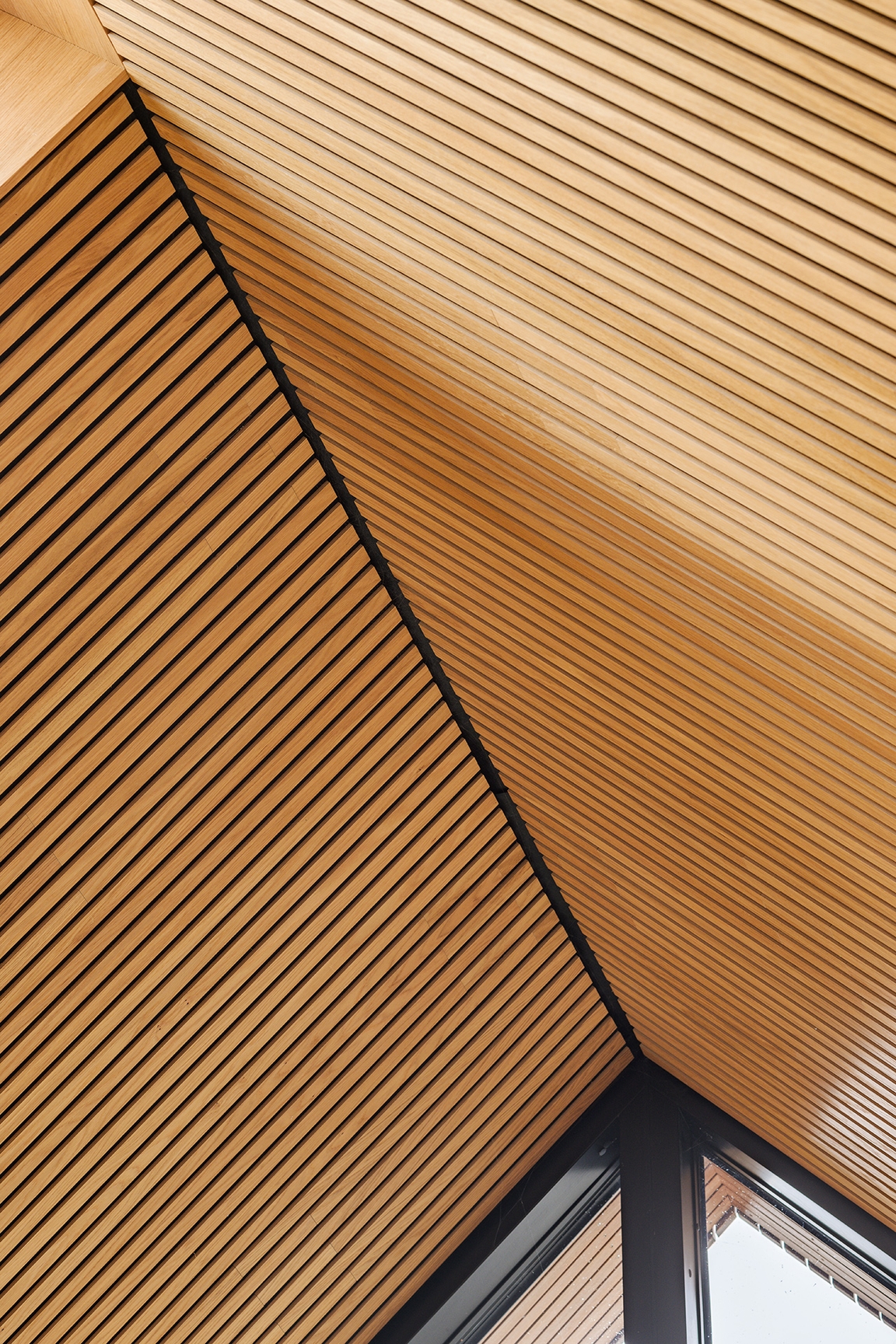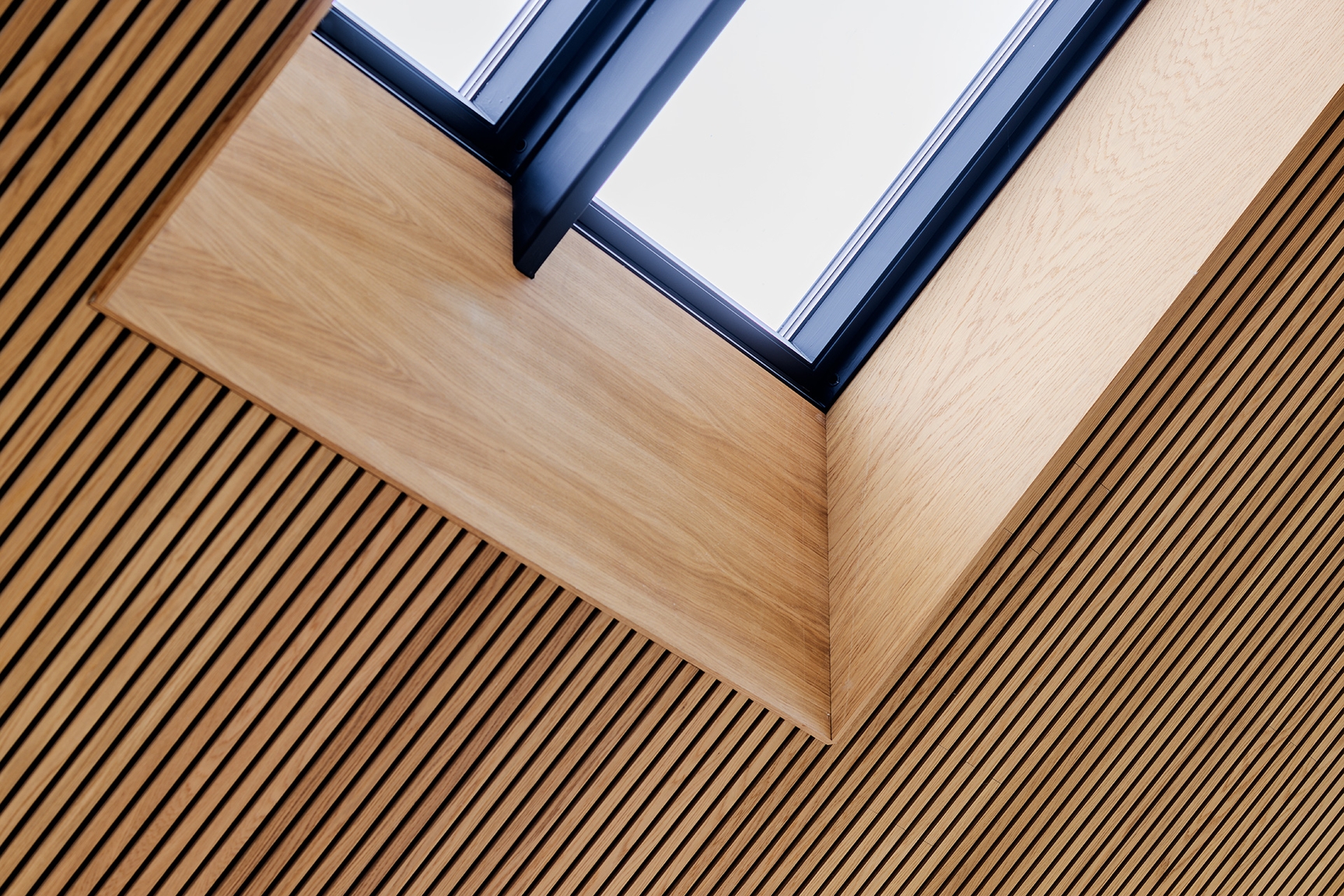 Sussi and Jens have created a completely new atmosphere and sense of space with their new ceiling panels. In a large living room with a high ceiling, the ceiling panels from I-Wood Denmark® especially help to give the room perfect acoustics and at the same time create a beautiful, natural and stylish look.