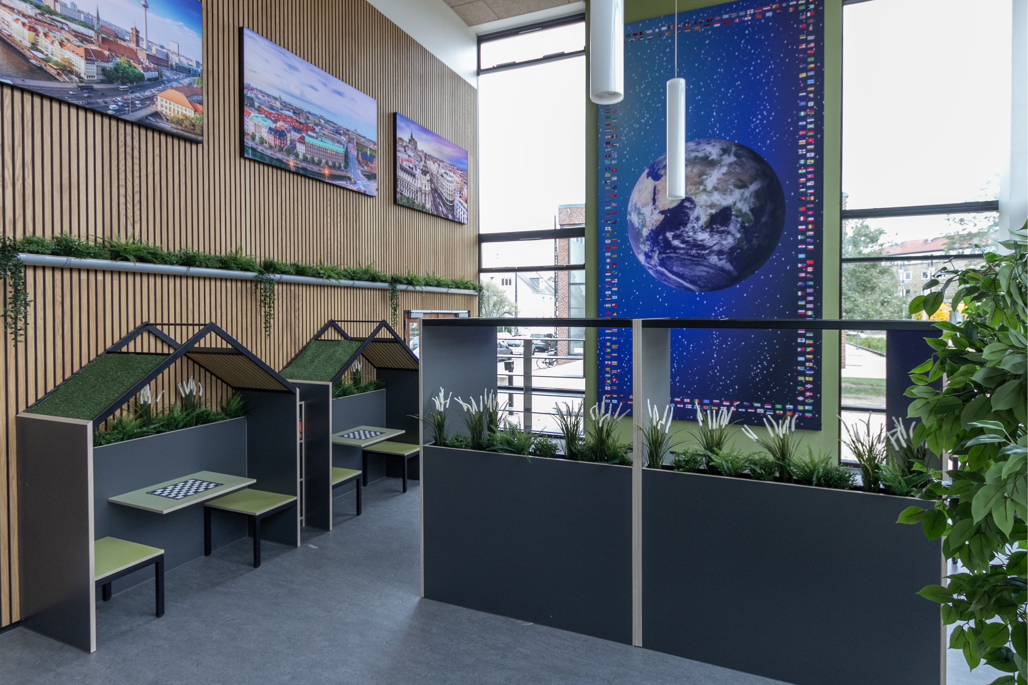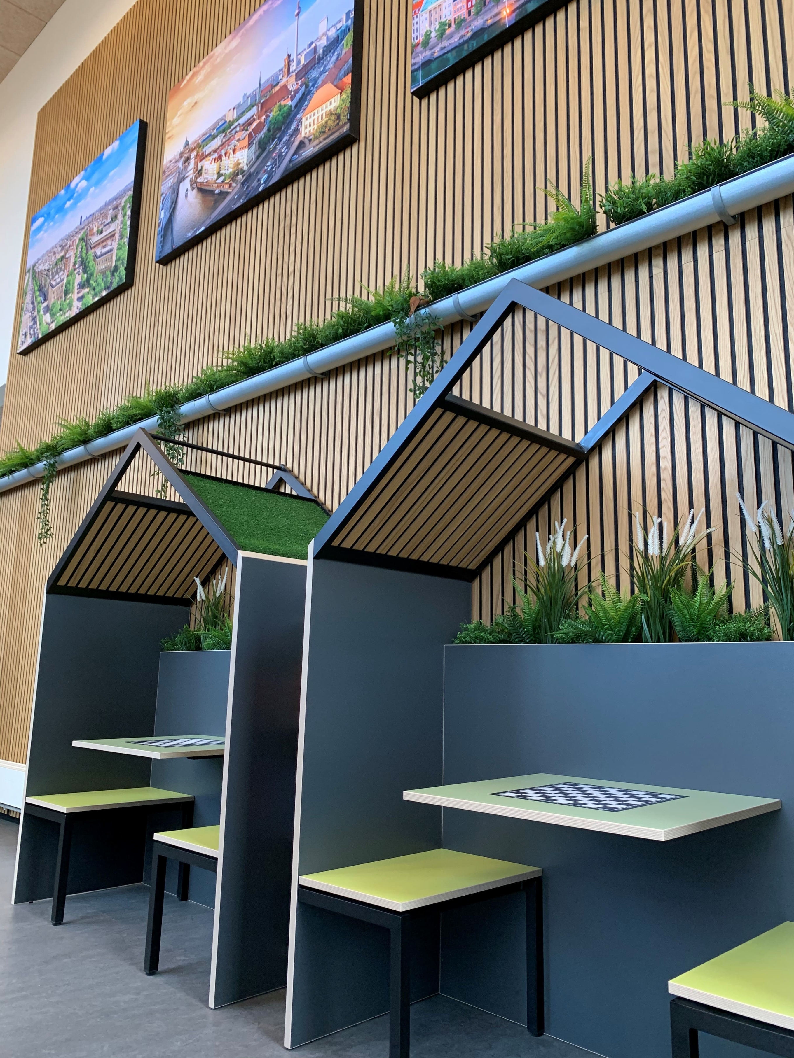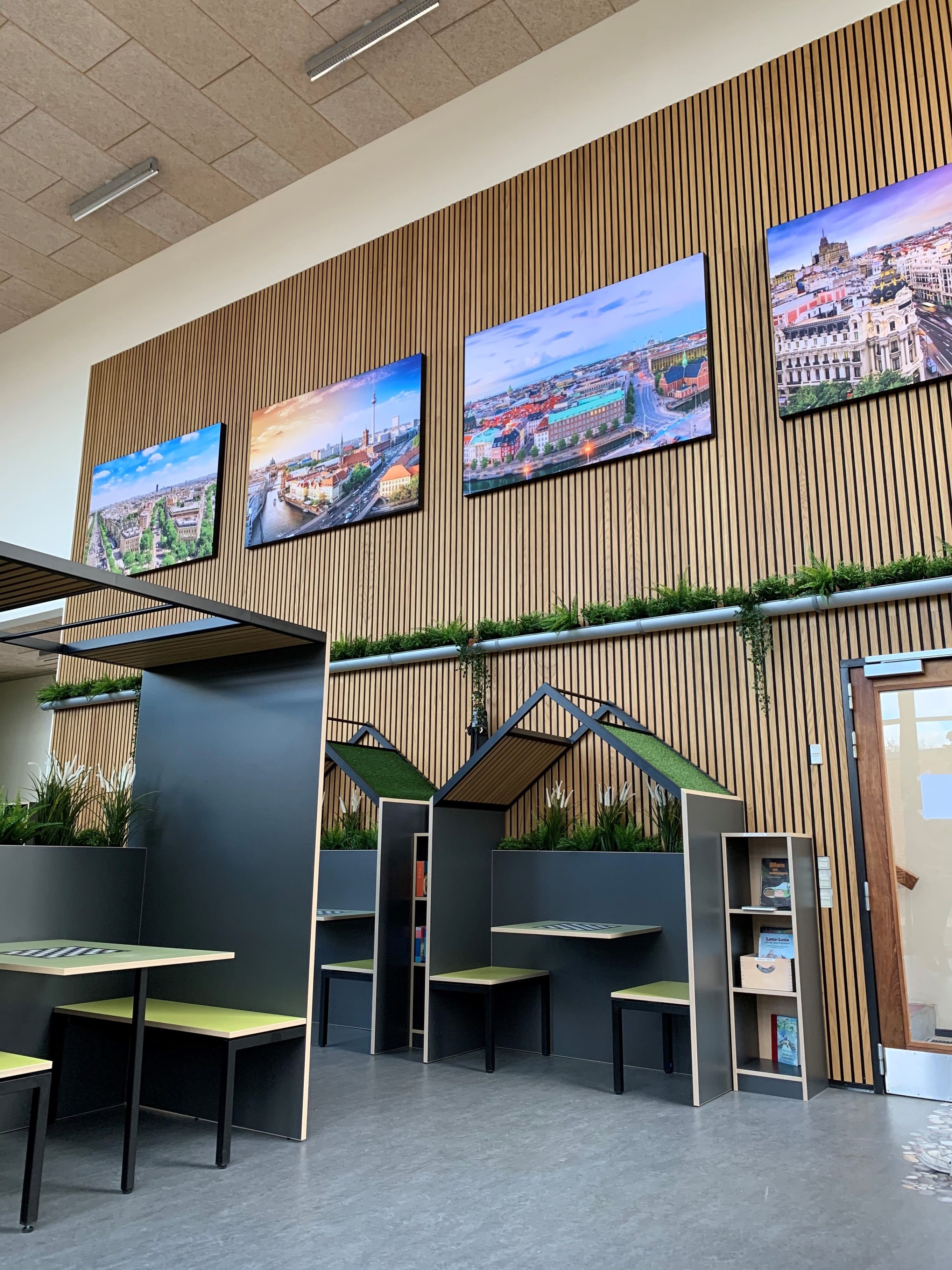 Utterslev School in Copenhagen gathers many people in large rooms, which can cause poor acoustics for both children and adults. Wall panels from I-Wood Denmark® have improved the acoustics, while significantly improving the aesthetics, so the children can learn in beautiful surroundings with good acoustics. Inspiration has been taken from the city with different environments being created inside the building, including that from small houses. This project was done in collaboration with Ultima K.