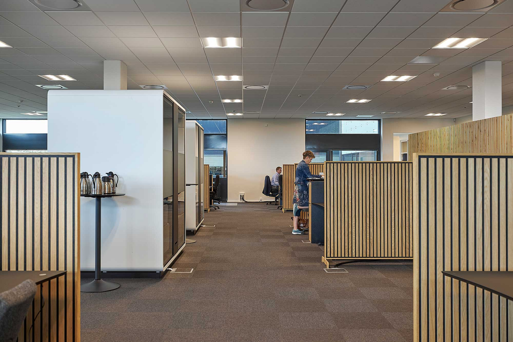 Actona Company wanted to improve the indoor climate in their common office spaces. The stylish dividing walls are primarily there to improve the acoustics in the large room and to divide up the workstations. These things combined are something that improves the working conditions. Flexi Wall is also a large part of the interior. Bringing natural materials and comfort into spaces that are otherwise cold creates a far more inspiring environment.