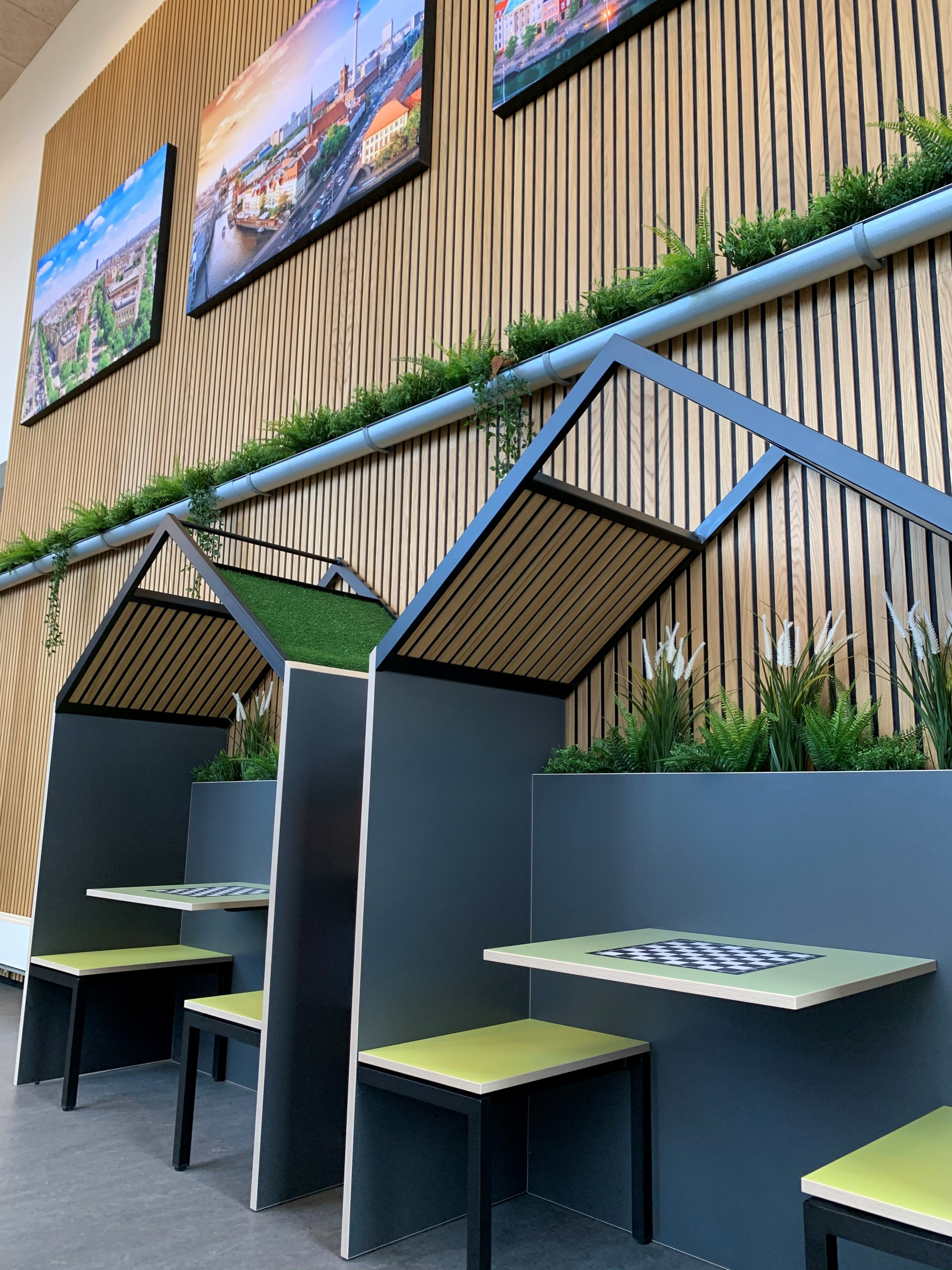 Utterslev School in Copenhagen gathers many people in large rooms, which can cause poor acoustics for both children and adults. Wall panels from I-Wood Denmark® have improved the acoustics, while significantly improving the aesthetics, so the children can learn in beautiful surroundings with good acoustics. Inspiration has been taken from the city with different environments being created inside the building, including that from small houses. This project was done in collaboration with Ultima K.